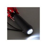 Полуавтоматический зонт-трость со светоотражающими элементами на куполе из запатентованного материала 3M™ Scotchlite™ обеспечит дополнительную защиту в темное время суток. В ручку встроен LED фонарик, который работает в двух режимах - постоянный белый свет и мерцающий красный. Батарейка в комплекте.