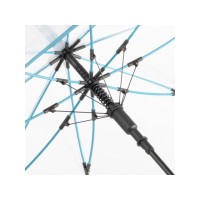 Зонт-трость с прозрачным куполом и контрастными деталями легко открывается нажатием кнопки на ручке. Каркас выполнен из прочной долговечной гальванизированной стали. Благодаря гибким спицам из стекловолокна зонту не страшны порывы ветра.