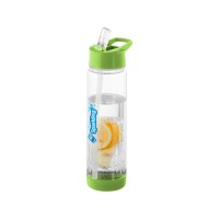 Оригинальная бутылка для воды. Благодаря отделению для фруктов есть возможность создания лимонада на свой вкус. Придется по вкусу любителям натуральных продуктов и здорового образа жизни. Легко разбирается. На пластиковый корпус возможно нанесение тампопечати. Объем – 740 мл.