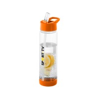 Оригинальная бутылка для воды. Благодаря отделению для фруктов есть возможность создания лимонада на свой вкус. Придется по вкусу любителям натуральных продуктов и здорового образа жизни. Легко разбирается. На пластиковый корпус возможно нанесение тампопечати. Объем – 740 мл.