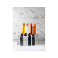 Стеклянная бутылка с одинарными стенками и съемной крышкой. На крышке есть ручка для удобной переноски. Рекомендуется использовать для холодных напитков. Не замораживать, не разогревать в микроволновой печи. Объем 500 мл.
