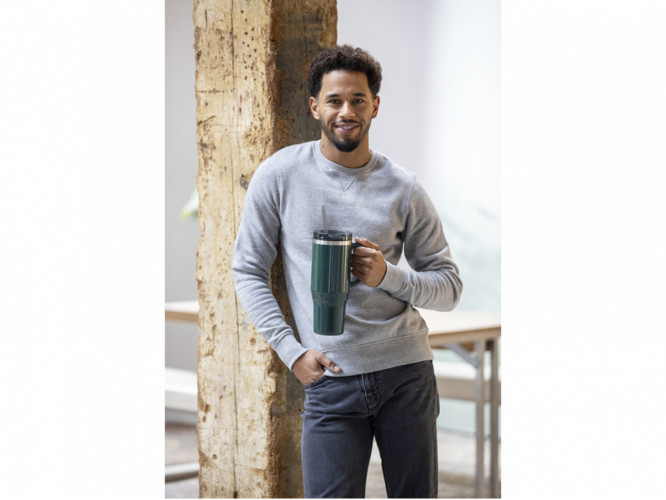 Кружка с двойными стенками из меди, сертифицированной RCS, и вакуумной изоляцией, изготовлена из нержавеющей стали, 91% которой подверглось вторичной переработке, сохраняет напитки холодными в течение как минимум 24 часов. Имеет соломинку Tritan и функцию слайдера крышки для предотвращения проливания. Прижимная поворотная крышка из 100% переработанного пластика надежно удерживает соломинку на месте и может легко поворачиваться, открывая отверстие для напитка. Прочное внешнее порошковое покрытие. Объем: 1200 мл. Только ручная мойка. Recycled stainless steel.