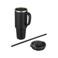 Основные характеристики Sydney медная кружка с двойными стенками, сертифицированная согласно RCS, с вакуумной изоляцией и соломинкой, 1200 мл - сплошной черный