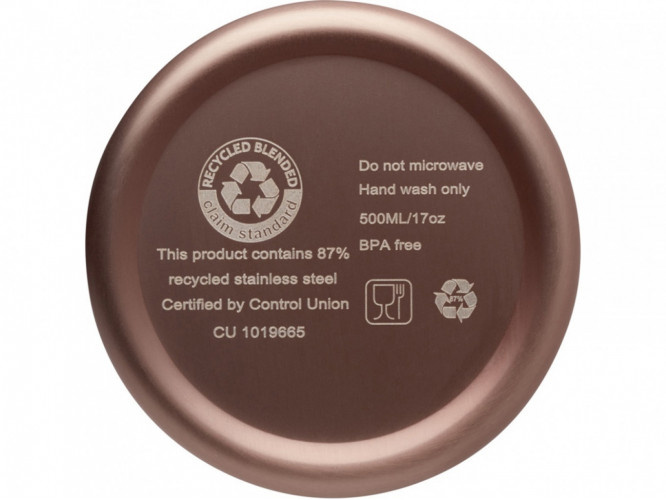 Бутылка из переработанной нержавеющей стали с двойными стенками и медной вакуумной изоляцией, сертифицированная по стандарту RCS. Оснащена завинчивающейся крышкой из переработанной нержавеющей стали с прочной петлей для руки из нержавеющей стали. Широкое горлышко для комфортного наполнения и заливки. Объем: 650 мл.