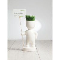 В комплекте деревянная палочка с зажимом, где можно разместить фотографию, открытку, визитку или записку с напоминанием.Изготавливается вручную из глины без искусственных примесей. В комплекте фигурка, грунт, семена теневыносливой газонной травы и инструкция для посадки.