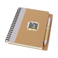 Записная книжка с обложкой из переработанной бумаги. 60 линованных листов, переработанная бумага формата А6, ручка в комплекте. Переработанная бумага.