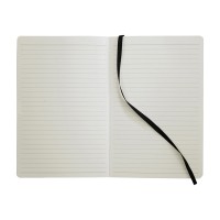 Классический блокнот с мягкой обложкой. Блокнот с мягкой на ощупь обложкой (ориентир размер А5) с эластичной застежкой, закладкой, кармашком для заметок внутри и 80 листов линованной бумаги (80 г/м?). Термо ПУ.