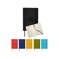 Классический блокнот с мягкой обложкой. Блокнот с мягкой на ощупь обложкой (ориентир размер А5) с эластичной застежкой, закладкой, кармашком для заметок внутри и 80 листов линованной бумаги (80 г/м?). Термо ПУ.