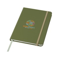 Блокнот А5 с цветной резинкой и закладкой. 96 листов белой бумаги (60 г/м2). FSC certified paper, PU Plastic. FSC Mix Credit P7.1 CU-COC-877277.