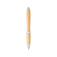 Шариковая ручка Nash из бамбука. Экологически чистая кнопочная шариковая ручка с корпусом из бамбука, хромированным зажимом и отделкой из АБС-пластика. Цвет бамбукового материала может отличаться. Бамбук, АБС-пластик.