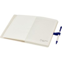 Блокнот A5 Dairy Dream с шариковой ручкой. Блокнот имеет 80 линованных листов (80 г/м?) из переработанных коробок из-под молока (до 70%), цветную спираль для бумаги и петлю для ручки. В петле находится шариковая ручка с кнопочным механизмом, цвет которой соответствует цвету блокнота. Корпус ручки также изготовлен из переработанных коробок из-под молока, а кнопка, зажим и наконечник изготовлены из цветного PLA-пластика. Внутри ручки имеется черный стержень. Картонные коробки из-под молока собираются, сортируются, перерабатываются и превращаются в бумагу, таким образом действительно превращая мусор во что-то полезное.