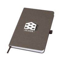 Легкий блокнот в твердой обложке для повседневных заметок с обложкой из материалов из ответственных источников. Коричневая обложка содержит остатки кофе, зеленая — остатки оливок, а белая — кукурузы. Имеет 80 листов (70 г/м?) из переработанной белой линованной бумаги.
