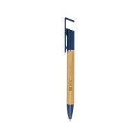 Бамбуковая шариковая ручка, которая также может служить подставкой для телефона. Кнопка и среднее кольцо изготовлены из переработанного пластика, наконечник — из латуни, а корпус — из бамбука, полученного из ответственных источников. Цвет чернил: синий. Длина непрерывной линии: 1000 метров. Размер пера: 1,0 мм. FSC certified bamboo. FSC Mix Credit N5 CU-COC-877277.
