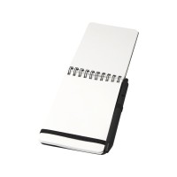 Блокнот Thalaasa формата А6 в твердой обложке изготовлен из переработанного океанического пластика и содержит 80 линованных листов кремовой бумаги плотностью 70 г/м?. Блокнот имеет закругленные углы, эластичную застежку и петлю для ручки. Шариковая ручка с черными чернилами также изготовлена из переработанного океанического пластика. Длина непрерывной линии: 1000 метров. Размер пера: 1,0 мм.