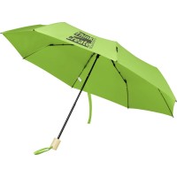 Описание Birgit, складной ветроустойчивый зонт диаметром 21 дюйм из переработанного ПЭТ, зеленый лайм