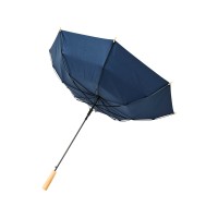 Полуавтоматический зонт с куполом из эпонж полиэстера и переработанного ПЭТ-пластика. Прочный металлический стержень, высококачественная рама со спицами из стекловолокна, обеспечивающая гибкость в ветреную погоду. Сочетание деревянной ручки, кончиков спиц и купола из эпонж полиэстера и переработанного ПЭТ-пластика обеспечивает надежность зонта.