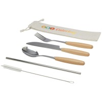 Описание Набор столовых приборов из нержавеющей стали и бука Root из 5 предметов - Натуральный