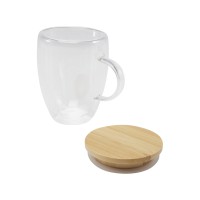 Код: Стеклянная кружка Leona объемом 350 мл с бамбуковой крышкой - пр