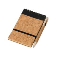 Оригинальный блокнот с обложкой из пробки и картона, а также блоком из переработанной бумаги. Петля для ручки и горизонтальная резинка расширяют функциональность.
