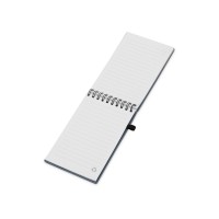 Блокнот с обложкой из переработанной пшеницы и пластика. Блок состоит из 60 листов переработанной бумаги белого цвета. Крепление - пружина. Дополнен петлей для ручки и горизонтальной резинкой.