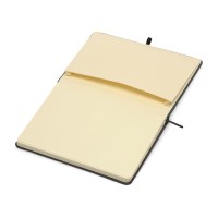 Классический блокнот в лаконичном дизайне. Обложка cо скругленными углами выполнена из картона и переработанной кожи. Внутренний блок из кремовой бумаги 70гр. Ляссе, резинка и карман для бумаг или карточек - для более удобного пользования. С помощью эластичной петли можно прикрепить любимую ручку или карандаш.