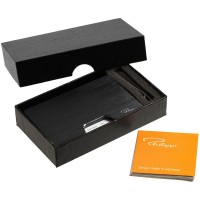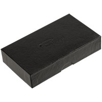 Две части футляра с RFID-защитой соединены резинкой, что позволяет использовать его для большого количества карт. Футляр вмещает до 25 пластиковых карт или до 70 визиток. Зажим для купюр можно закрепить на футляре или использовать отдельно. Упакован в фирменную черную коробку Philippi с шубером.
