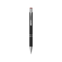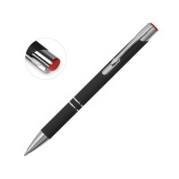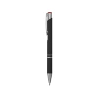 Черная шариковая ручка с кнопочным механизмом и тактильно приятным покрытием софт-тач. Цветная гравировка соответствует цвету кнопки и делает ее еще более изысканным подарком.