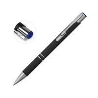 Черная шариковая ручка с кнопочным механизмом и тактильно приятным покрытием софт-тач. Цветная гравировка соответствует цвету кнопки и делает ее еще более изысканным подарком.