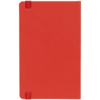 Блокнот в твердой обложке, выполнен из материала Soft Touch Ultra, красный РР, дополнен резинкой и ляссе в цвет обложки.