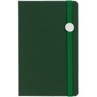 Блокнот в твердой обложке, выполнен из материала Soft Touch, зеленый FF, дополнен резинкой и ляссе в цвет обложки.