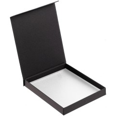 Коробка выполнена из переплетного картона, кашированного гладкой дизайнерской бумагой Magic, с крышкой на магните.