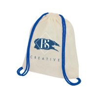 Описание Рюкзак со шнурком Oregon, имеет цветные веревки, изготовлен из хлопка 100 г/м2, бежевый/синий