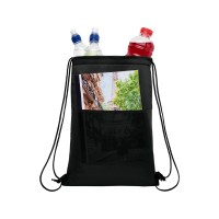 Сумка-холодильник затягивается на шнурок черного цвета. С открытым передним карманом. Вмещает 12 банок. Прочность до 5 кг.