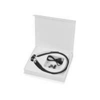 Беспроводная гарнитура "Soundway" может порадовать качественным звучанием на протяжении 8 часов без подзарядки. Гибкая дужка с покрытием soft-touch позволяет избежать любого дискомфорта даже при беге. В дужке находятся микрофон, современный аккумулятор, кнопка управления, защищенный разъем micro USB для зарядки и модуль вибро-оповещения, благодаря которому вы не пропустите ни один звонок. Когда наушники не используются их можно закрепить вокруг шеи при помощи магнитов. Гарнитура "Soundway" поставляется в подарочной упаковке на магнитах, в комплект входят кабель для зарядки, сменные насадки разных размеров и инструкция.