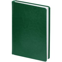 Ежедневник с твердой обложкой без поролона, выполнен из материала Nebraska, зеленый FF, дополнен ляссе и капталом в цвет обложки.