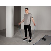 Спортивная скакалка имеет эргономичные ручки для проведения комфортных тренировок, обладает средней скоростью вращения. Способствует развитию выносливости, улучшает работу дыхательной и сердечно-сосудистой систем.