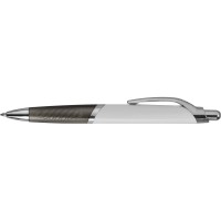 Надежная шариковая ручка с белым корпусом и цветной вставкой. Нажимной механизм, оригинальная форма клипа. Будет хорошим промосувениром для вашей компании. На пластиковый корпус возможно нанесение методом тампопечати.