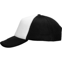 Бейсболка из 5 клиньев с мягкой сеткой. Регулируемая пластиковая застежка сзади. Передняя панель продублирована тонким поролоном.