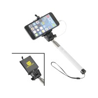 Проводной монопод. Сделайте идеальный селфи с этим выдвижным моноподом (до 90 см). Не требует батареи или использования приложения. Просто подключите 3,5 мм аудио разъем в телефон (совместим со всеми мобильными телефонами IOS) и нажмите на кнопку, расположенную на ручке. Регулируемый держатель телефона подходит для всех смартфонов. Силикон, сталь и ПВХ.