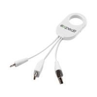 Кабель для зарядки «3-в-1». Кабель для зарядки Troop «3-в-1» с коннектором USB Type C и двойным совместимым коннектором «2-в-1» для устройств Apple® iOS и Android. Кабель оснащен карабином для удобного крепления к сумке. АБС-пластик.