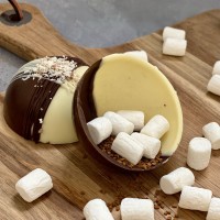 Способ приготовления: положите шоколадную бомбочку в чашку и залейте 250-300 мл горячего молока. Состав: сфера из темного и белого шоколада, кофе растворимый сублимированный, маршмеллоу. Срок годности 7 месяцев.