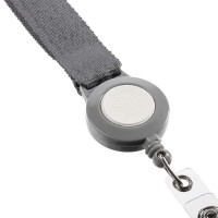 Описание Лента для бейджа с ретрактором Devon, серая с белым