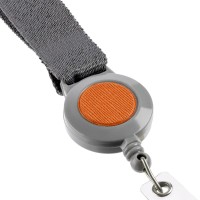 Описание Лента для бейджа с ретрактором Devon, серая с оранжевым