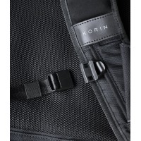Анатомическая конструкция рюкзака вместе с широкими лямками и поперечным ремнем на магнитной пряжке перераспределяют часть нагрузки с плеч и спины на талию и бедра, в результате чего вес рюкзака воспринимается на 20-25% легче, чем при использовании стандартных моделей