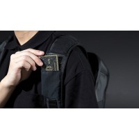 Дополнительно на лямках расположен карман с RFID-защитой для кредитной карточки и петельки, за которые можно прицепить очки или проводные наушники