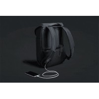 На правой лямке рюкзака находится USB-порт, на левой — карман на липучке с двумя отделениями с RFID-защитой для карточек и ключей