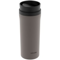 Стильная термокружка с металлическим корпусом и удобным клапаном для питья.