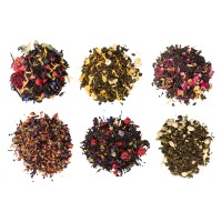Комплектность чай манго-маракуйя черный, таежный сбор черный, манговый улун черный, моли хуа с бутонами жасмина зеленый, ягодный пирог травяной, граф Орлов черный