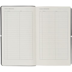 Внутри вы найдете пронумерованные страницы для записей, а также несколько специальных страниц: