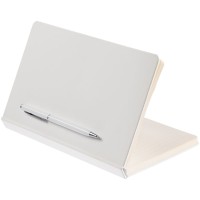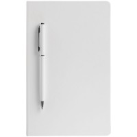 Рекомендуемое место печати на ручке: на корпусе напротив клипа. Ежедневник в твердой обложке, выполненной из материала Soft Touch, белый ВВ, дополнен атласным ляссе и магнитом, удерживающим ручку.